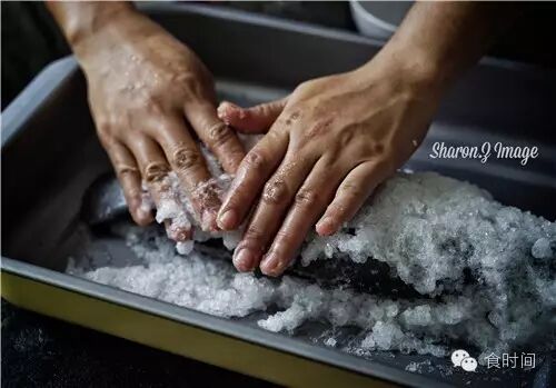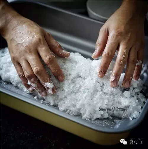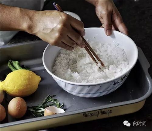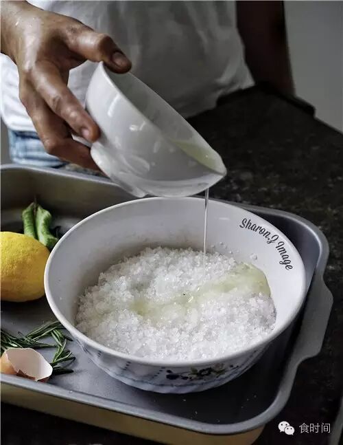 3:粗海盐倒入碗中,加入蛋清,搅匀,不够可以略加一点点水,不要太多太湿。