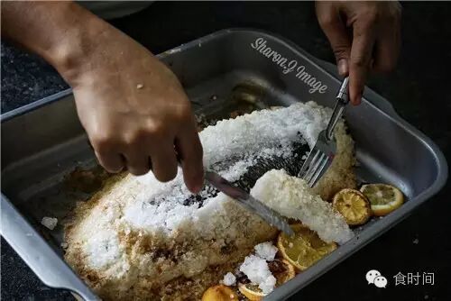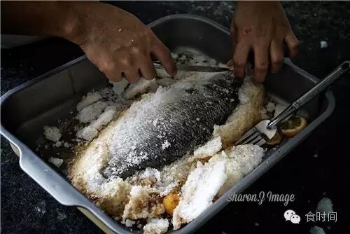 不用担心会太咸,事实上一点也不咸,这个我们的客家盐焗鸡有点相似,但是因为鸡皮是会吃的,所以,盐焗鸡会用竹笋纸包起来再裹上盐,而西式这种盐烤鱼呢,就直接去掉鱼皮,也是个不错的方法,因为去了皮,没有额外油脂,盐份也不高,用盐包着烤熟,能保持肉质里的水份和柔嫩度,营养和美味健康共存,这道菜是减脂期可以天天吃的,过年过节或是假日宴请朋友时,端上这么一道盐烤鱼,都是非常合适的。